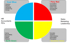Figure 2 below shows the four colours that are used to describe different personalities and behaviours. Research shows that typically 80% of the population will have a dominant colour. Understanding which one will help us to define the right way to communicate with that person.