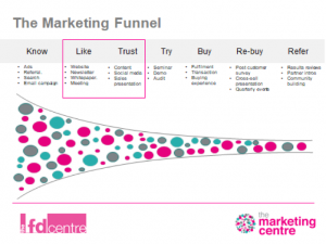 The dialogue (or sales meeting) that we mentioned above usually takes place in and around the “Like” and “Trust” area of the funnel and is going to be the area we look at first in Part 1 of our walk around the topic of Consultative Selling. Part 2 will be discussed at a future Hot Topic event on the 29th March.