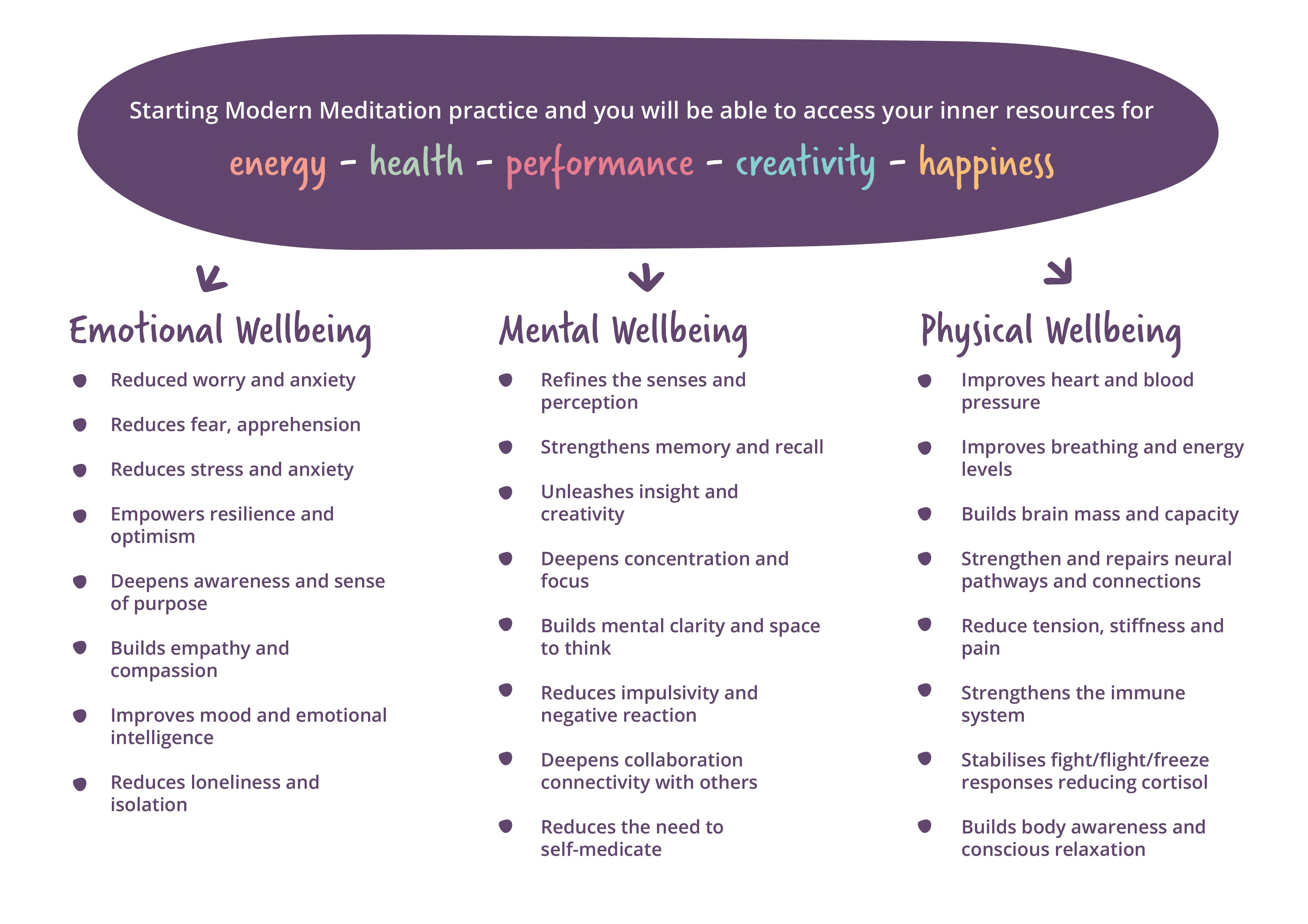 If there’s one thing that we know, this new workplace revolution is not so much about technological change but about how we change and adapt. The old model of how we used to work is just not sustainable. So how do we prepare for the new industrial revolution? The solution is a workplace-applied modern meditation programme. This is a tried and tested method and is an increasingly popular way not only to tackle stress but to nurture creativity, flexibility and insight. Learning modern meditation is a win-win for any organisation. And it’s easy to do. You can help employees not only deal and adapt to these new pressures, but also apply their deeper skills.