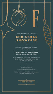 Join us for festive drinks and canapes on Thursday 1st September 2022, PLUS there’s 20% off your food bill when you dine with us after the event!
