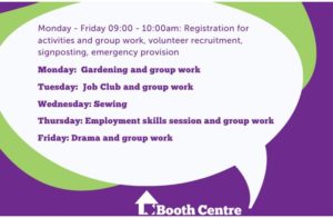 This month The Booth Centre wanted to share how they have been keeping people connected through lockdown and what their reopened service looks like.